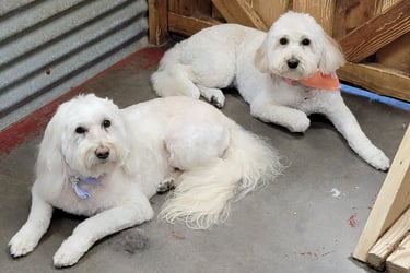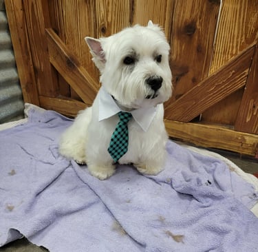 Your pup will be allowed to run free in a gated area with other friendly pups waiting to be groomed, or just hanging out for the day! We will always provide fresh water, beds, potty breaks, treats provided they have no dietary restrictions, and constant supervision.