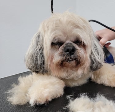 Grooming time is typically 2-4 hours. We have to groom so many dogs each day, and every dog requires a different amount of time to groom. Anxious, older, and matted dogs require more time to groom safely.